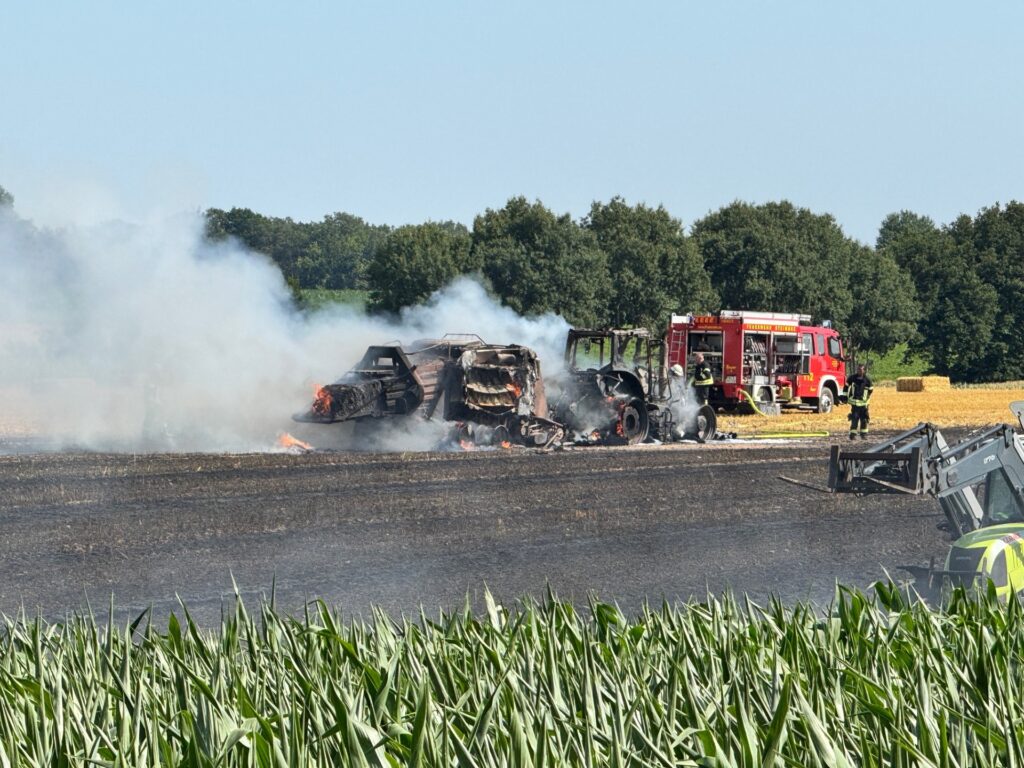 Beim Eintreffen stand die landwirtschaftliche Maschine bereits in Vollbrand. Die Rauchsäule war weithin sichtbar und führte dazu, dass auch Feuerwehren aus umliegenden Landkreisen alarmiert wurden, nachdem dort irrtümlich Meldungen über ein vermeintliches Feuer im eigenen Zuständigkeitsbereich eingingen.