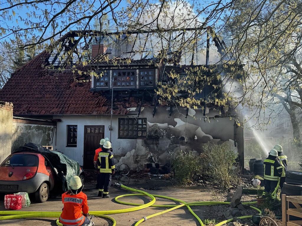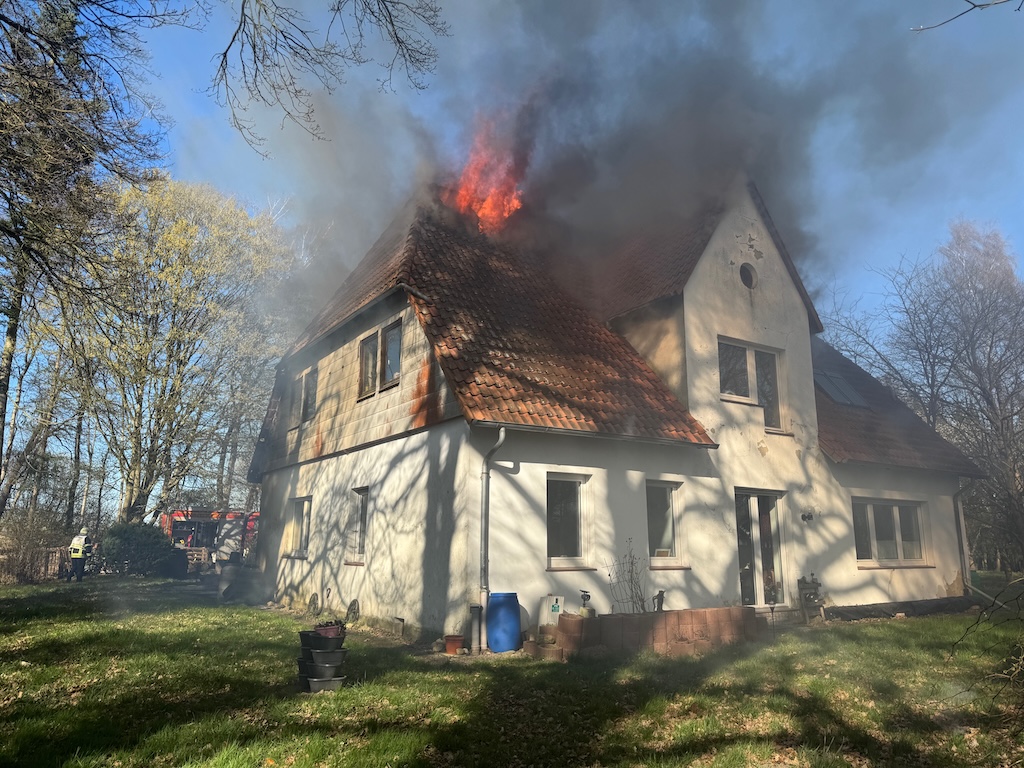 Ein Gebäudebrand in Wenden hielt am Samstagnachmittag die Feuerwehren der Samtgemeinde Steimbke in Atem Auf der Burg in Wenden war ein freistehendes Wohnhaus aus bislang unbekannten Gründen in Brand geraten. Personen kamen nicht zu Schaden. Der einzige Bewohner war bei Brandausbruch nicht zu Hause. Besonders herausfordernd für die Einsatzkräfte war die schnelle Ausbreitung des Feuers. Innerhalb weniger Minuten stand der Dachstuhl im Vollbrand. Die Nienburger Drehleiter drehte auf der Rückfahrt vom Brand in Eitzendorf nach Wenden ab, konnte aber aufgrund der schlechten Zugänglichkeit des Hauses nicht eingesetzt werden. Bis in den Abend bekämpften die Feuerwehrkräfte aus Wenden, Stöckse, Steimbke, Linsburg, und Nöpke noch Brandnester in der Zwischendecke. Zur Unterstützung wurde am Abend das Technisch Hilfswerk angefordert, um mit Hilfe eines Baggers besseren Zugang zu den Brandnestern zu bekommen. Die Polizei hat die Ermittlungen zur Brandursache aufgenommen.