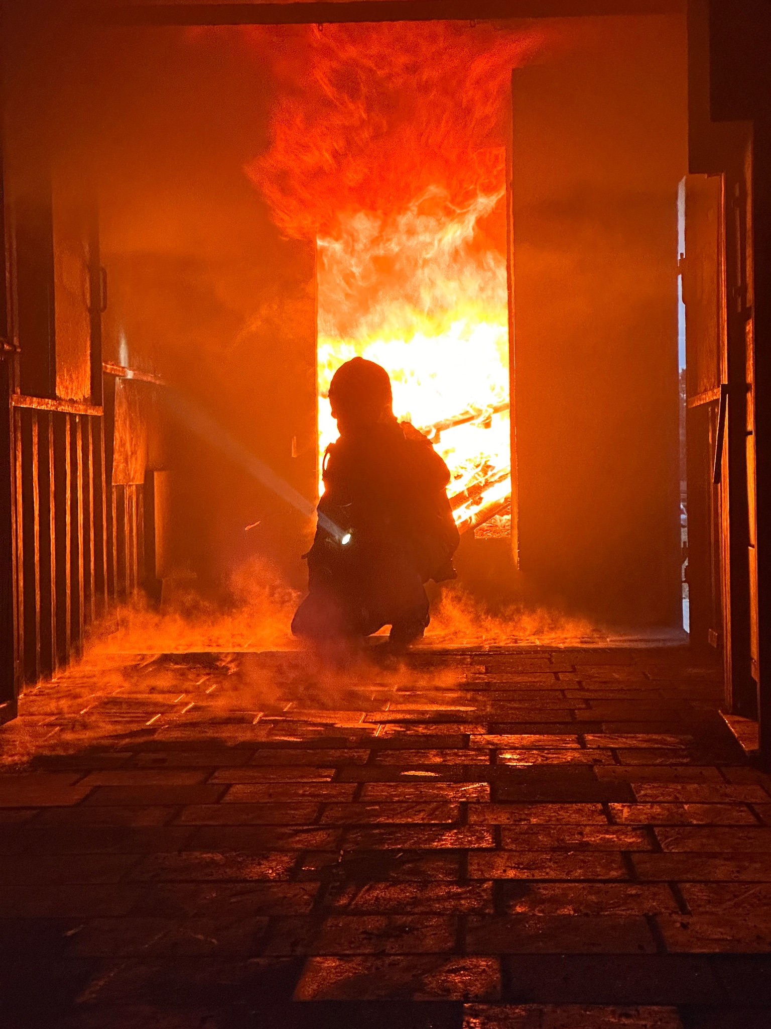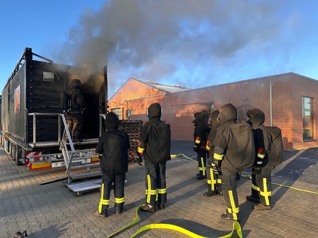 Während der dreitägigen Fortbildung durchlief jede Teilnehmerin und jeder Teilnehmer drei Übungsdurchgänge. Im Mittelpunkt standen der sichere Umgang mit dem Hohlstrahlrohr im Innenangriff, das Verhindern von Rauchgasdurchzündungen sowie das Vorgehen in thermisch stark aufgeheizten Brandbereichen. Auch das „Lesen der Rauchschichten“ gehörte zu den zentralen Lerninhalten, ebenso wie die realitätsnahe Simulation einer Rauchgasdurchzündung.